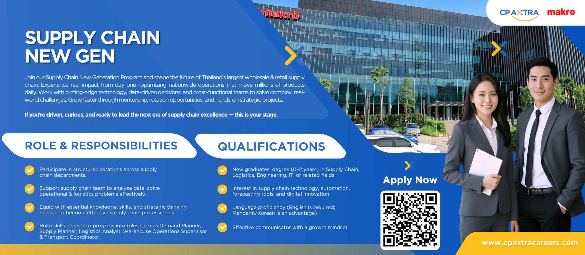 แสดงศักยภาพและร่วมทีม AXTRA ที่เต็มไปด้วยคนเก่งและมีพลังในฐานะผู้นำตลาดค้าปลีก B2B/B2C ที่มาพร้อมกับภารกิจ ที่ท้าทายและให้โอกาสได้แสดงผลงาน เติบโตอย่างมั่นคงในระยะยาว